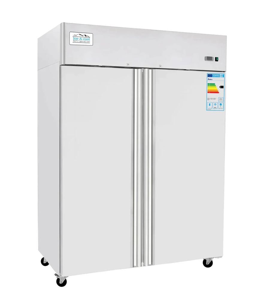 Artikelnummer: ICE8114GRRejäl frysskåp från ICE-A-COOL i rostfritt stål - totalt 8 hyllplan. Digital kontroll av temperatur. Självstängande dörr med lås. 4 hjul. GN 2/1