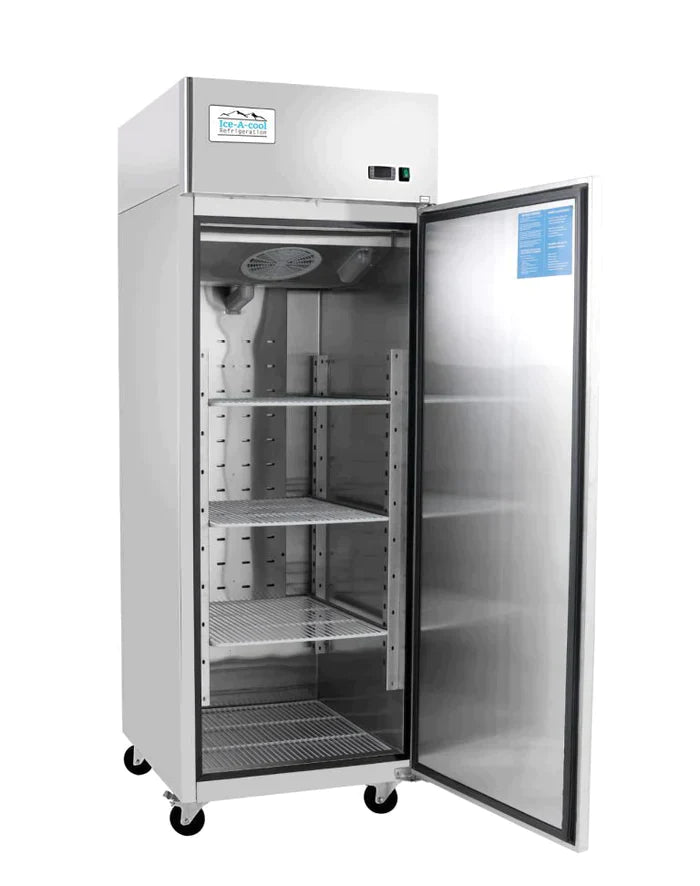 Artikelnummer: ICE8113GRRejäl frysskåp från ICE-A-COOL i rostfritt stål - totalt 4 hyllplan. Digital kontroll av temperatur. Självstängande dörr med lås. 4 hjul. GN 2/1