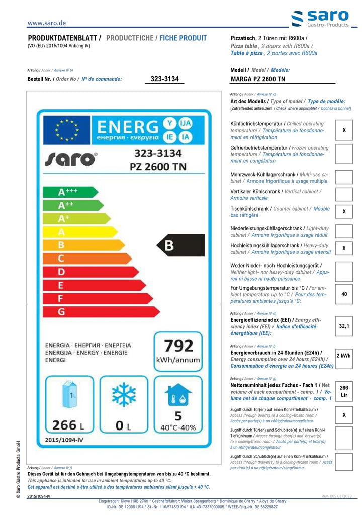 - Energieffektiv apparat med A-klass: A+++ B (perspektiv 5-klass)