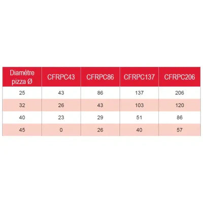 - Kapacitet: 206 pizzor Ø 25cm/h