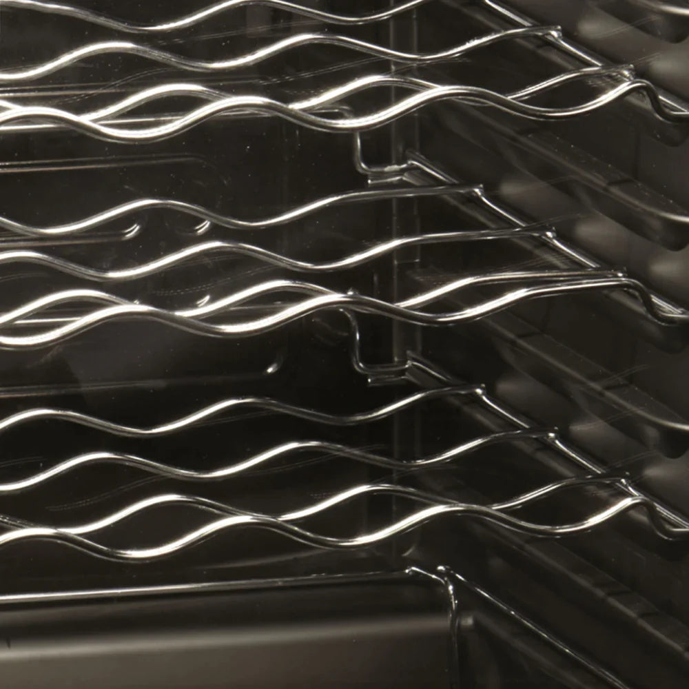 Ett kvalitetsvinkylskåp med en smart, svart finish. Inuti finns vinhyllor som rymmer upp till 22 x 75 cl flaskor. Idealisk för presentation och förvaring av vitt vin och rosé. Aggregatet kyls med en fläkt, vilket säkerställer en jämn temperatur i hela skåpet, och därmed rätt serveringstemperatur på det lagrade vinet.